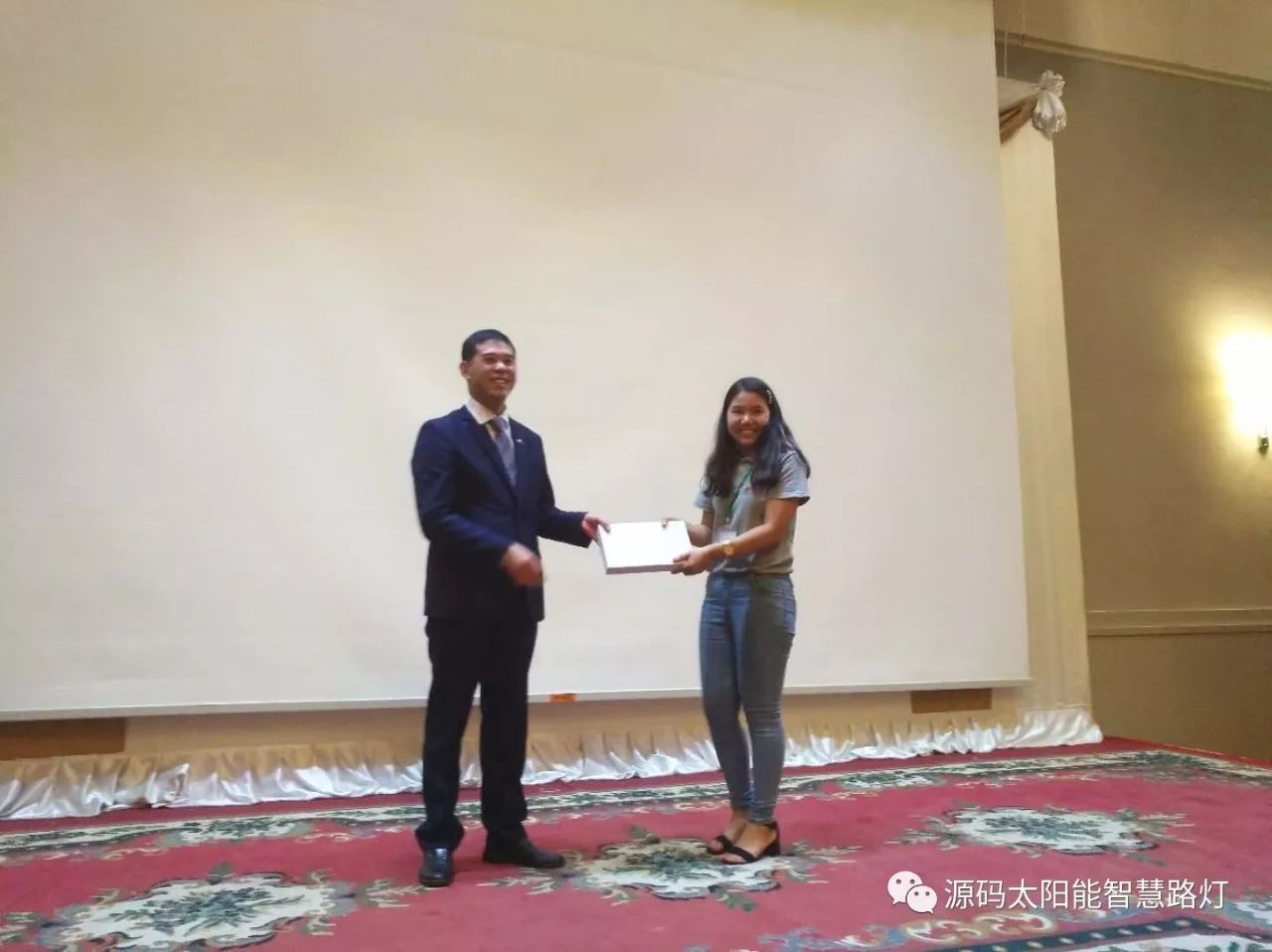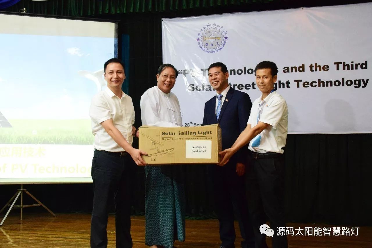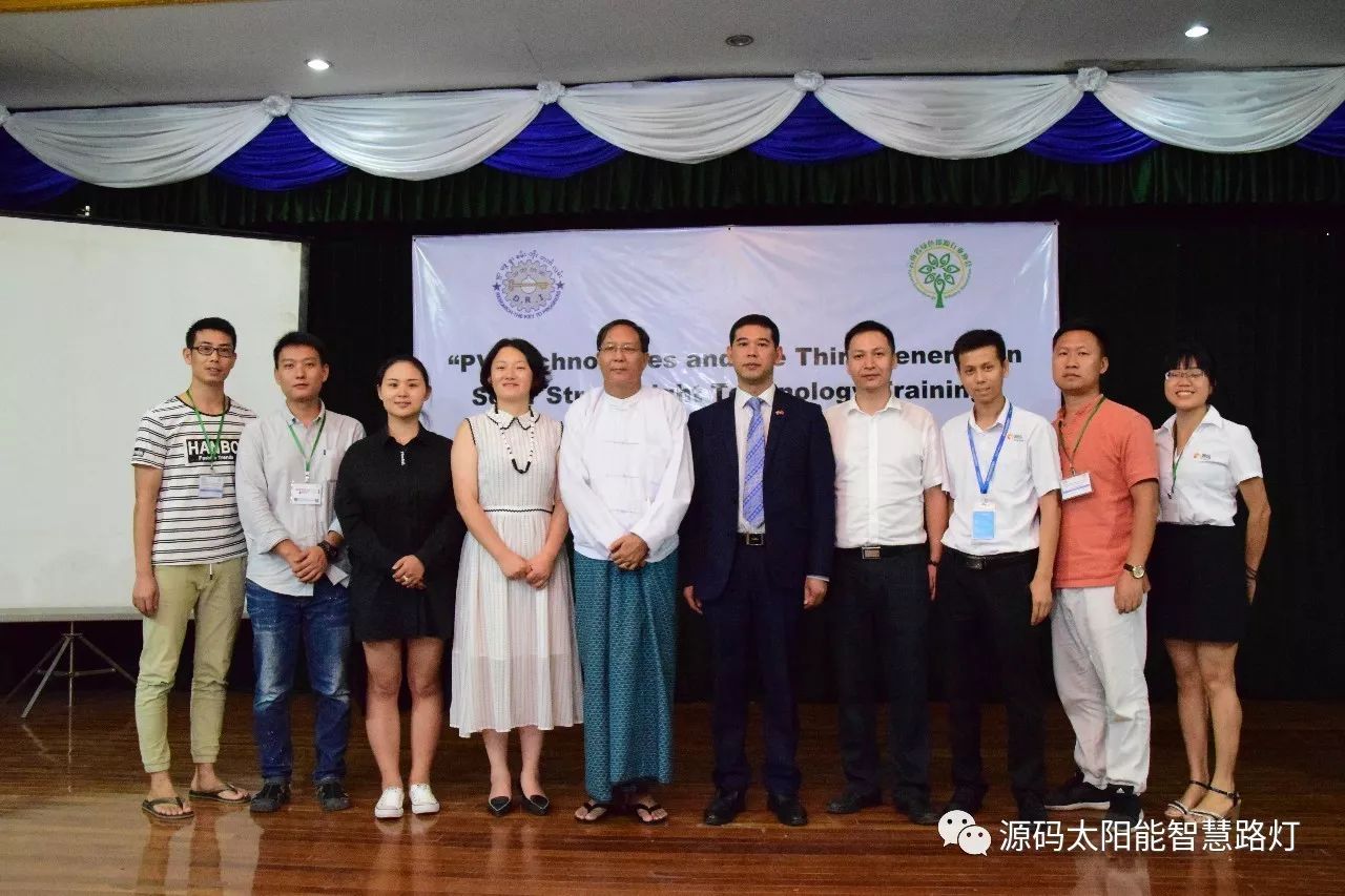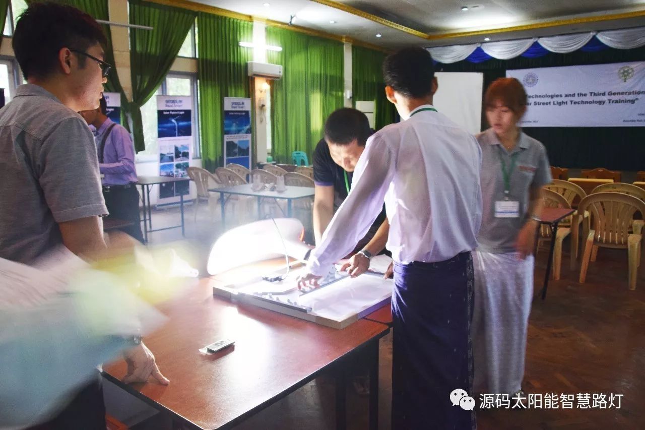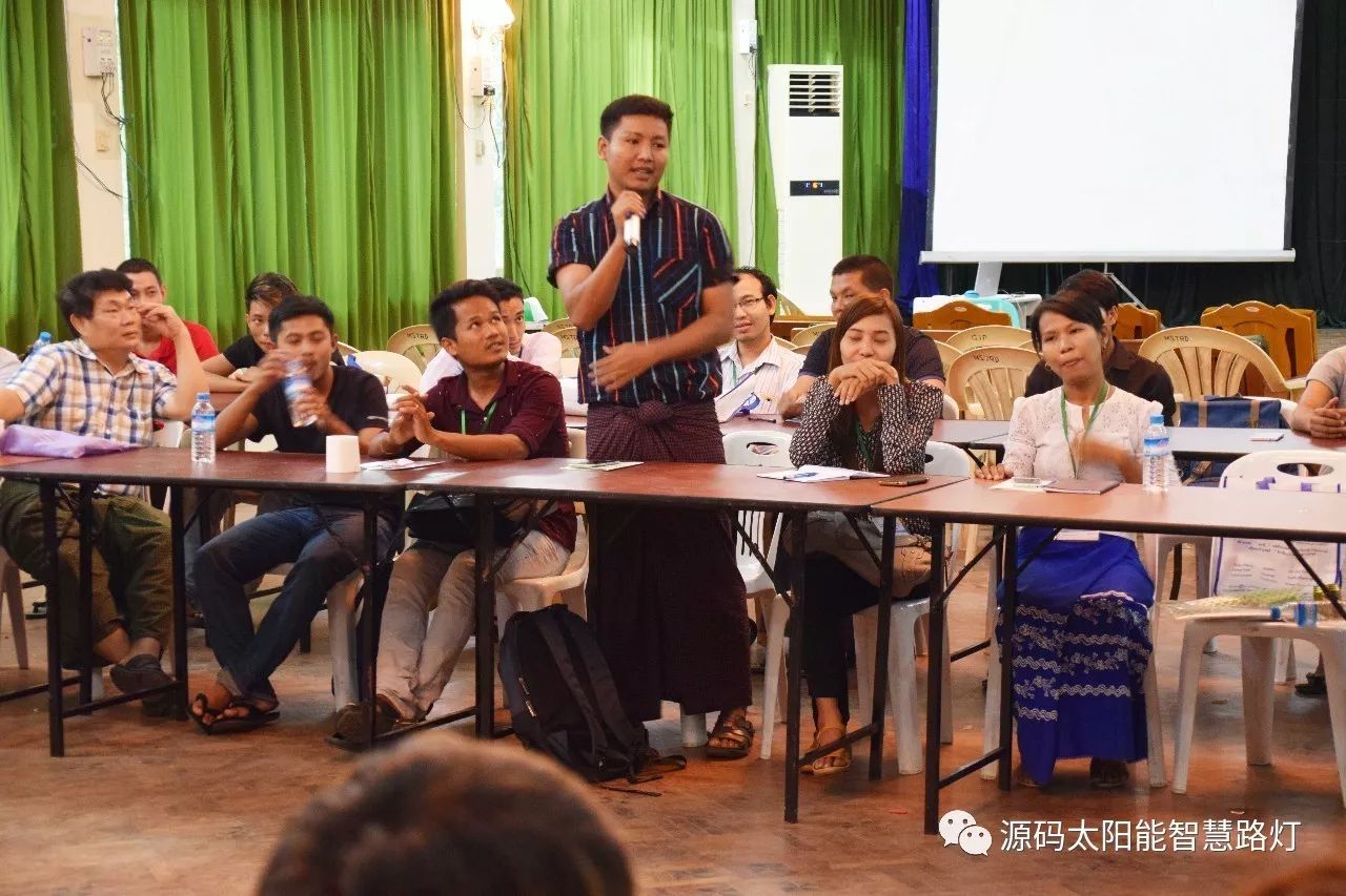在培訓(xùn)會議后,大家對此次的培訓(xùn)綜合內(nèi)容及取得的效果進(jìn)行了深入研討,參與此次培訓(xùn)的能源部、政府部門的相關(guān)人員以及大學(xué)教授、企業(yè)代表都對此次培訓(xùn)會的效果表示滿意,也希望以后能有更多的類似的培訓(xùn)會,源碼也希望在以后的培訓(xùn)中能夠給他們帶來更好的效果。研討會后,中國駐緬甸大使館領(lǐng)導(dǎo)對本次會議作了總結(jié):對本次培訓(xùn)會議的培訓(xùn)方云南省綠色能源行業(yè)協(xié)會以及源碼太陽能智慧路燈表示感謝,表示此次會議對雙方的技術(shù)交流學(xué)習(xí)以及中緬兩國友誼的加深都取到了十分良好的效果。接著緬甸教育部科技司司長則親自向所有通過考試的學(xué)員頒發(fā)了證書,在頒獎過程中,源碼也向緬甸教育部科技司捐贈了兩套太陽能智慧路燈。