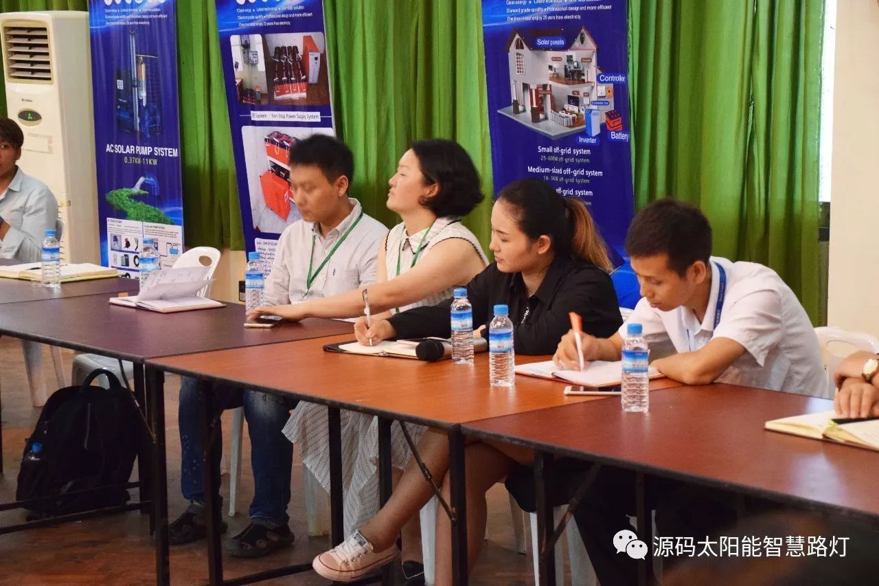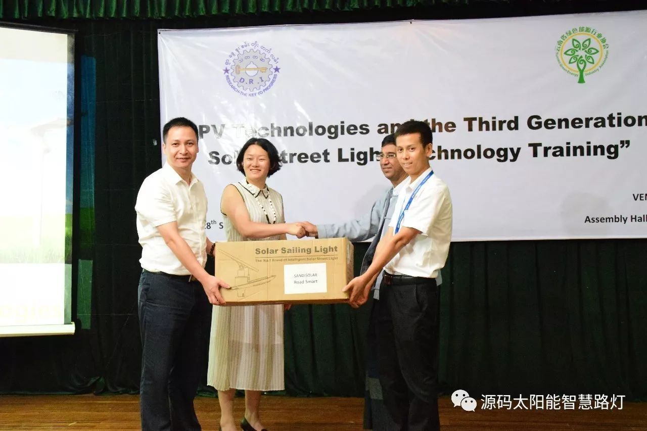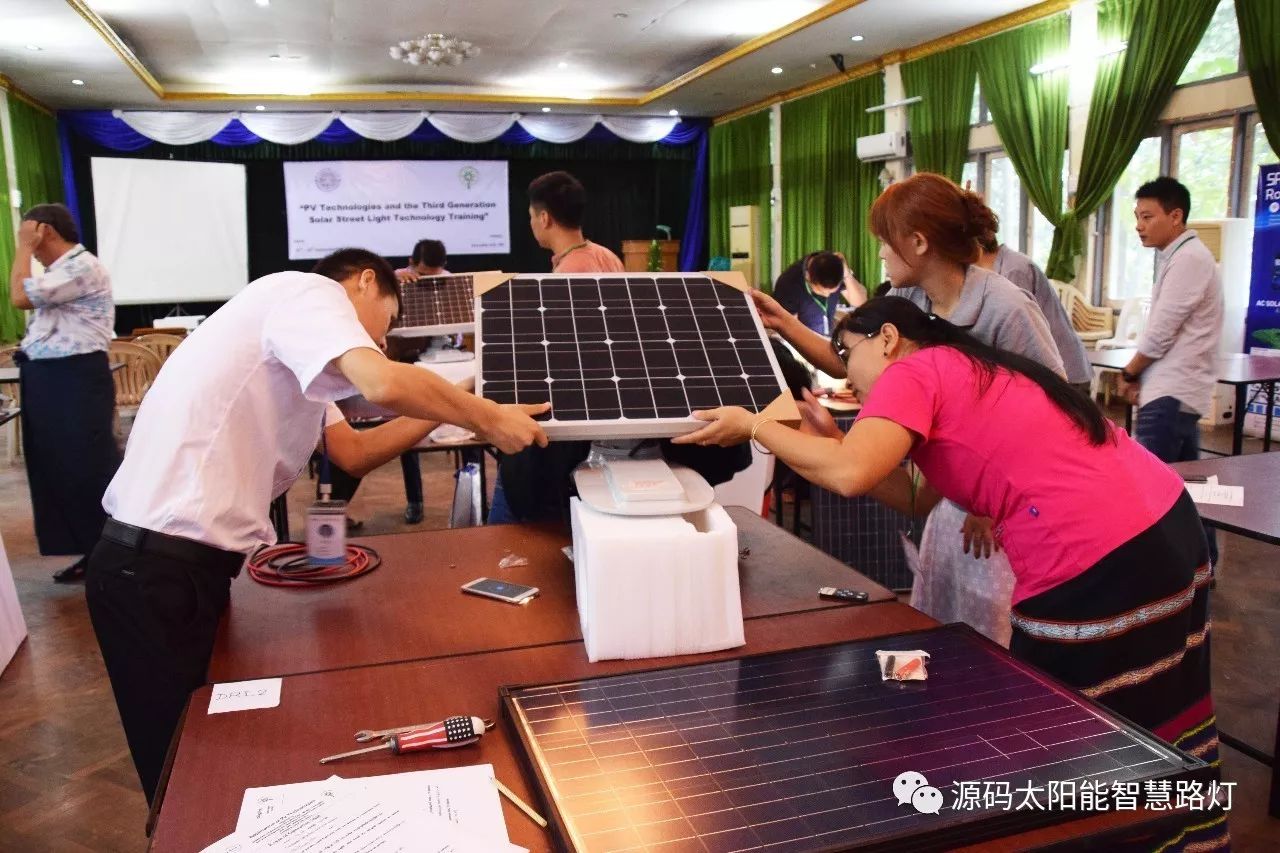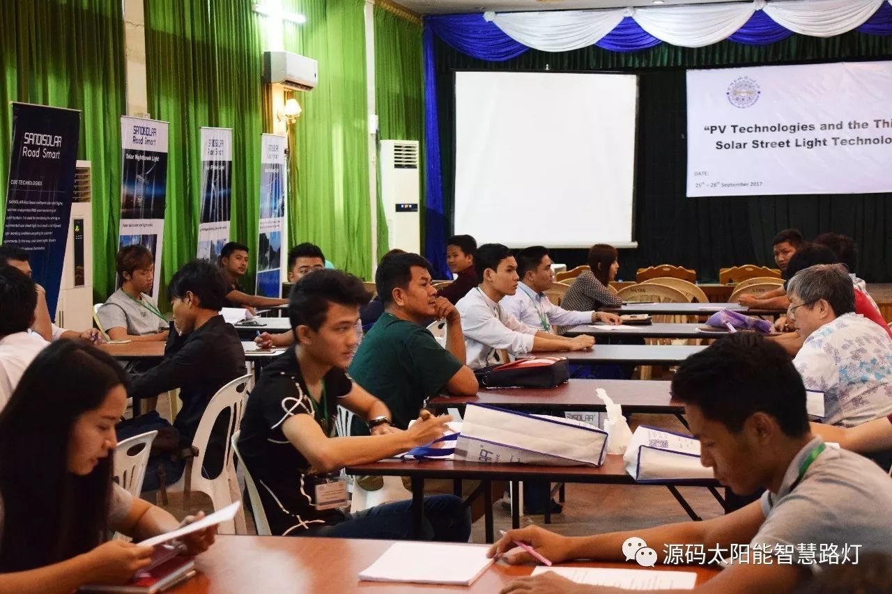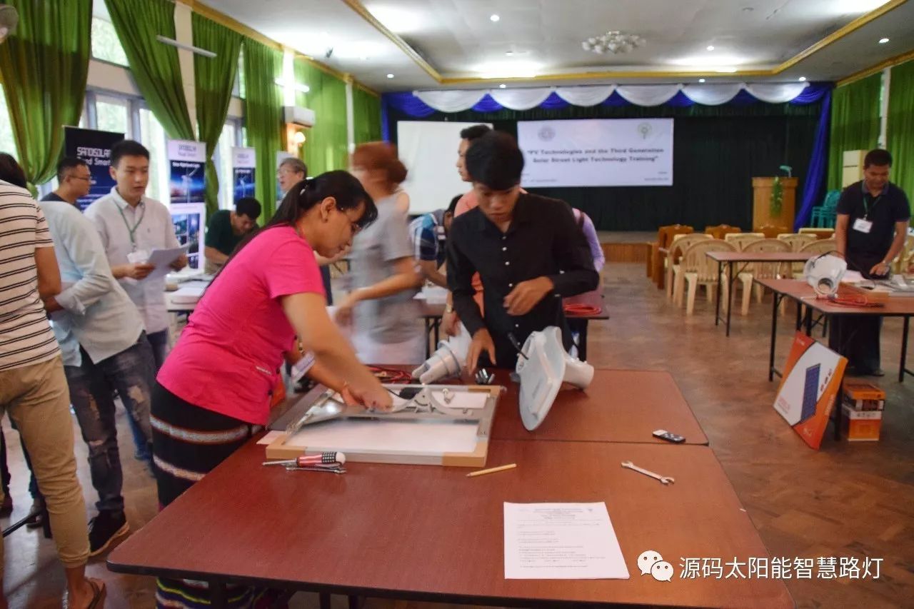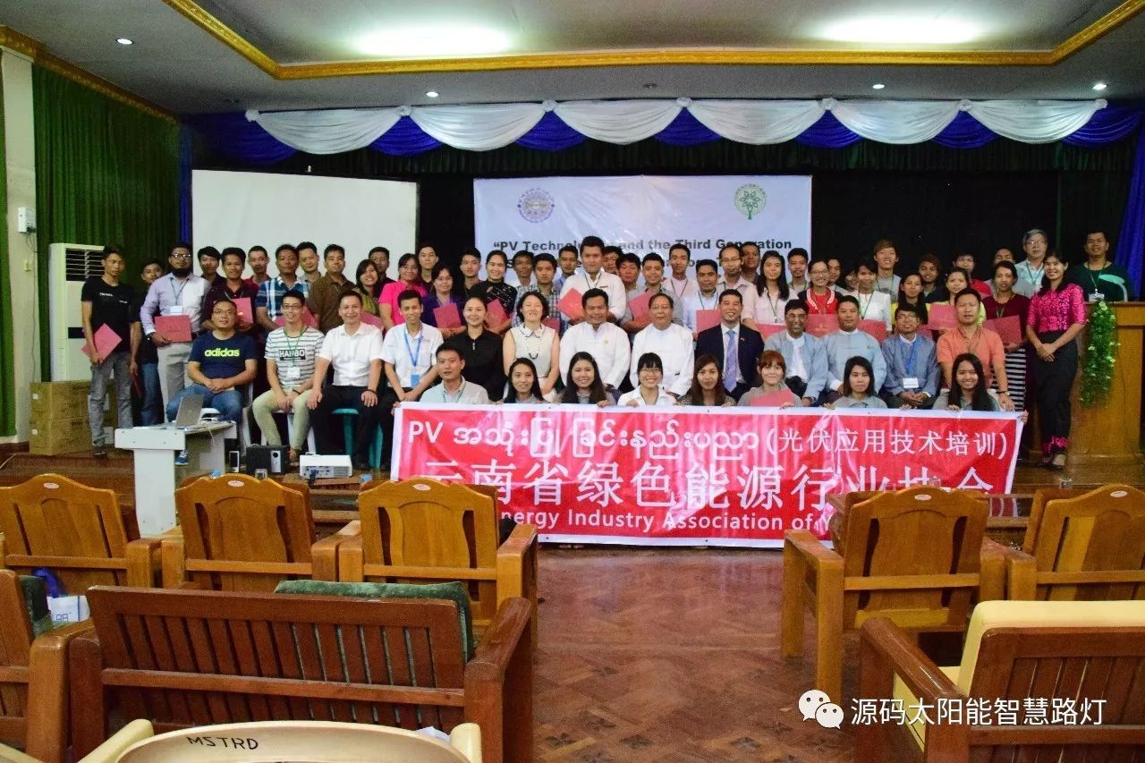 在培訓(xùn)會議后,大家對此次的培訓(xùn)綜合內(nèi)容及取得的效果進(jìn)行了深入研討,參與此次培訓(xùn)的能源部、政府部門的相關(guān)人員以及大學(xué)教授、企業(yè)代表都對此次培訓(xùn)會的效果表示滿意,也希望以后能有更多的類似的培訓(xùn)會,源碼也希望在以后的培訓(xùn)中能夠給他們帶來更好的效果。研討會后,中國駐緬甸大使館領(lǐng)導(dǎo)對本次會議作了總結(jié):對本次培訓(xùn)會議的培訓(xùn)方云南省綠色能源行業(yè)協(xié)會以及源碼太陽能智慧路燈表示感謝,表示此次會議對雙方的技術(shù)交流學(xué)習(xí)以及中緬兩國友誼的加深都取到了十分良好的效果。接著緬甸教育部科技司司長則親自向所有通過考試的學(xué)員頒發(fā)了證書,在頒獎過程中,源碼也向緬甸教育部科技司捐贈了兩套太陽能智慧路燈。