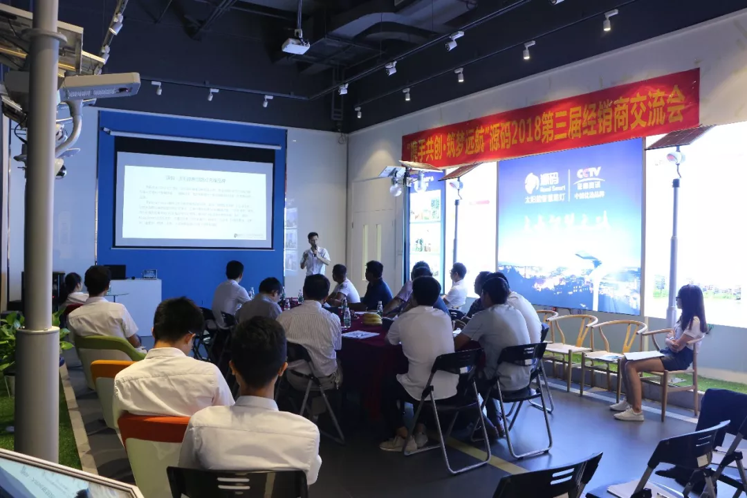 7月14號,會議正式拉開帷幕。會議上,項總對源碼做了介紹及總結,產品上,源碼搭載自主研發設計的智能監測與控制系統,并榮獲80余項專利,并首創了太陽能路燈的標準-Rs標準;品牌上,源碼線上線下推廣相融合,線下,全國80+終端展廳,全面提升價值體驗感,并與CCTV,世界照明報等達成合作;戰略上,源碼堅持全球化戰略,產品遍及世界120多個國家和地區??蛻袈犕?,更加強了對源碼的認可感。