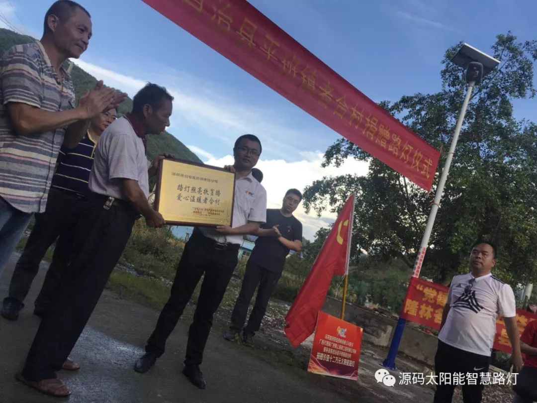 8月31日下午,隆林平班鎮(zhèn)者合村路燈捐贈(zèng)儀式如期舉行,儀式現(xiàn)場,源碼太陽能路燈劉總及源碼廣西區(qū)域經(jīng)銷商蔡總向者合村無償捐贈(zèng)太陽能路燈。