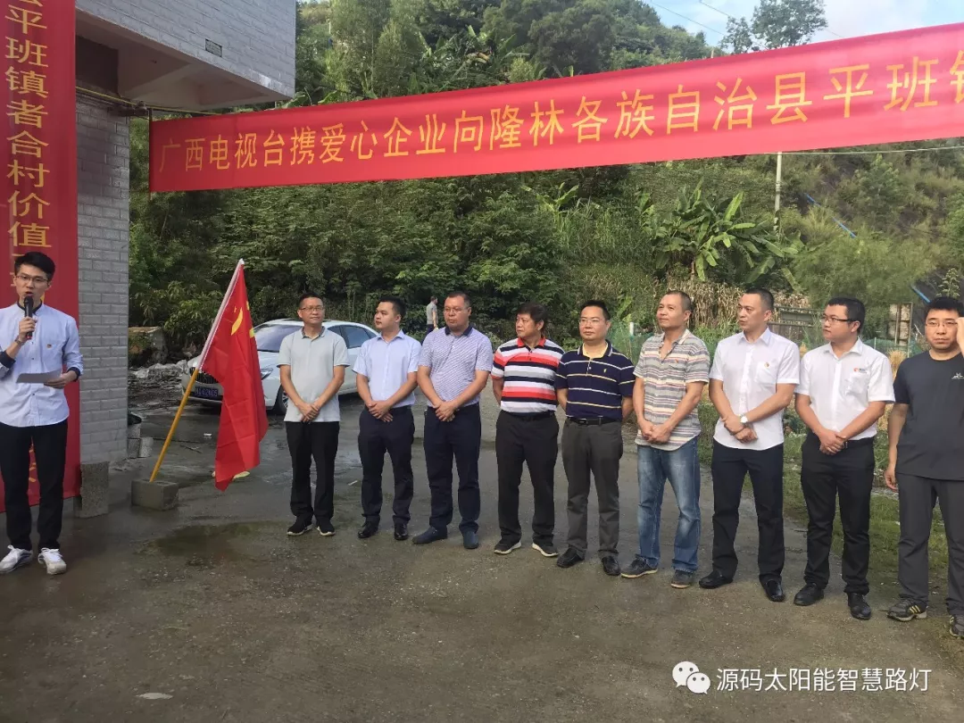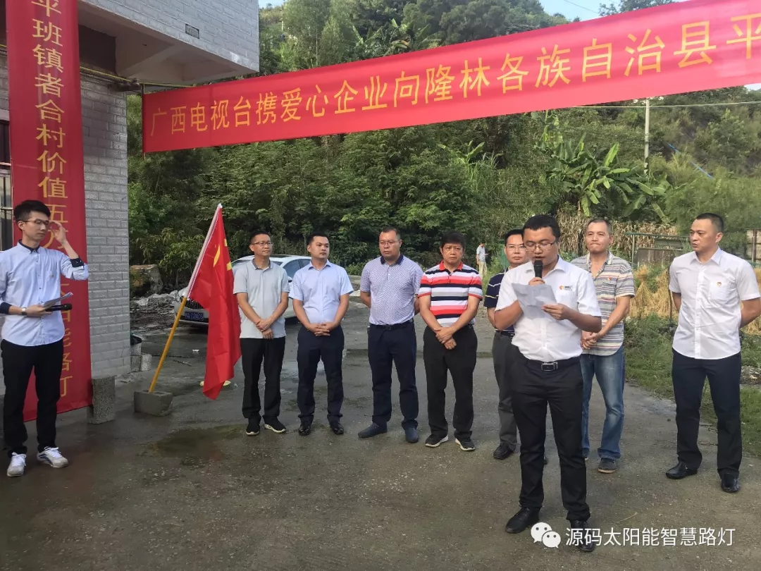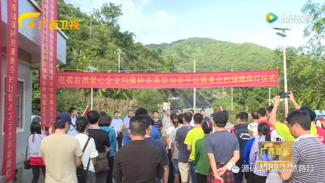 8月31日下午,源碼太陽能路燈聯(lián)合廣西電視臺(tái)向百色隆林平班鎮(zhèn)者合村捐贈(zèng)太陽能路燈。此次捐贈(zèng)的路燈,不僅亮化了村莊,更照亮了鄉(xiāng)親們的幸福生活。對(duì)者合村進(jìn)一步提高村級(jí)基礎(chǔ)設(shè)施水平、保障農(nóng)村群眾夜晚出行安全,保障和改善民生將發(fā)揮積極作用。