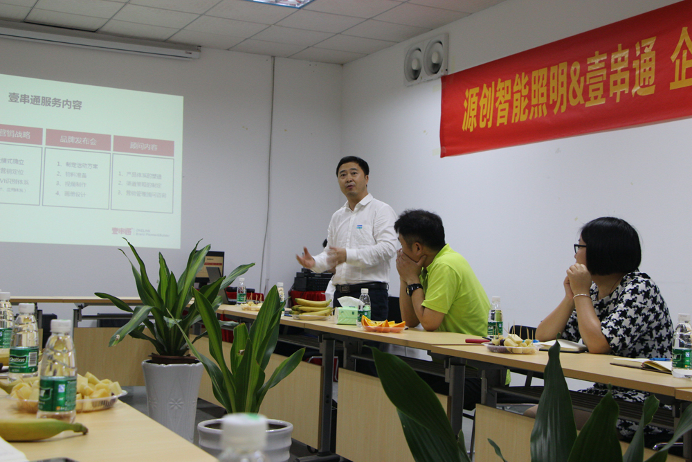 2016年4月14日,源創智能照明&壹串通企業戰略及品牌營銷項目合作會議正式啟動,這一戰略合作的啟動標志著源創智能照明將以更具高度的營銷視野去打造實力品牌路線,讓源創在行業里有特殊的標簽,有獨特的品牌性格,變得與眾不同,獨一無二。
