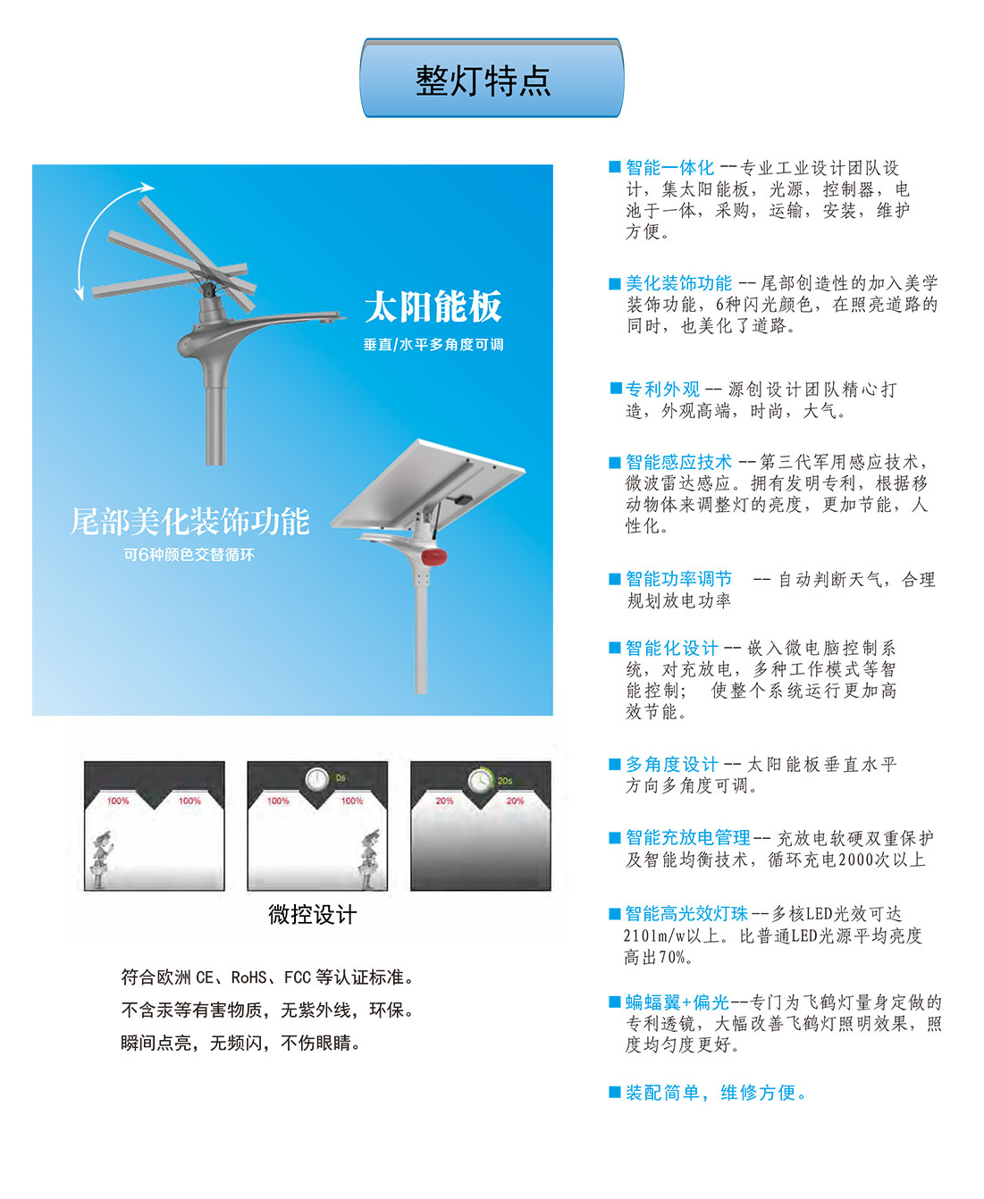 飛鶴燈作為中高端太陽能智慧路燈,被廣泛應用于新農村道路、城市主干道或者慢車道、旅游景區、公園、廣場等場景。