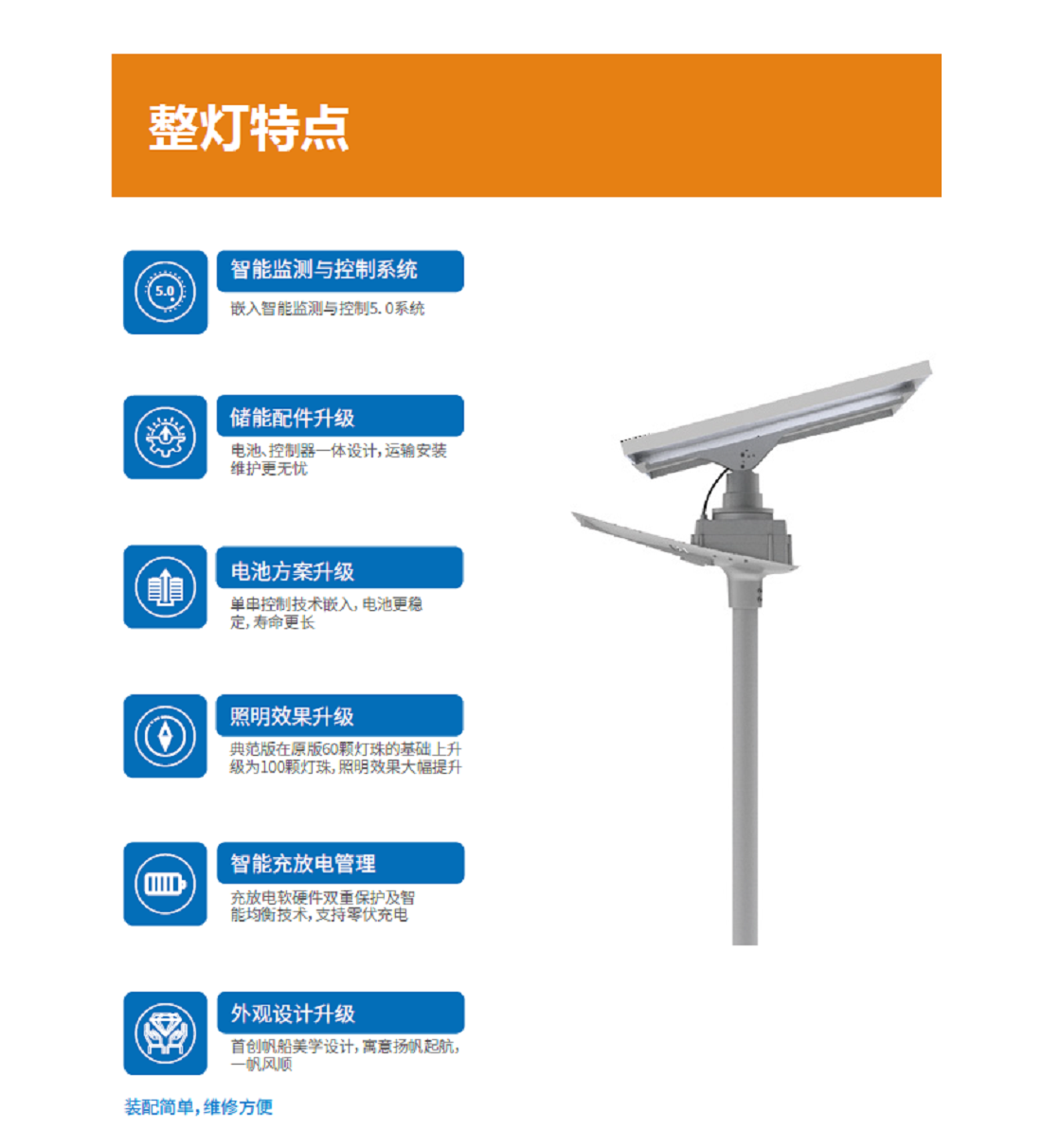 揚帆燈典范版作為揚帆燈的迭代新款,亮度和性價比均大幅提升,被廣泛應用于新農村道路、旅游景區、公園、廣場、居民小區、城市慢車道/窄車道等場景。